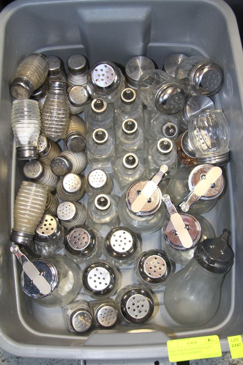GREY TOTE FILLED WITH CONDIMENT CONTAINERS
