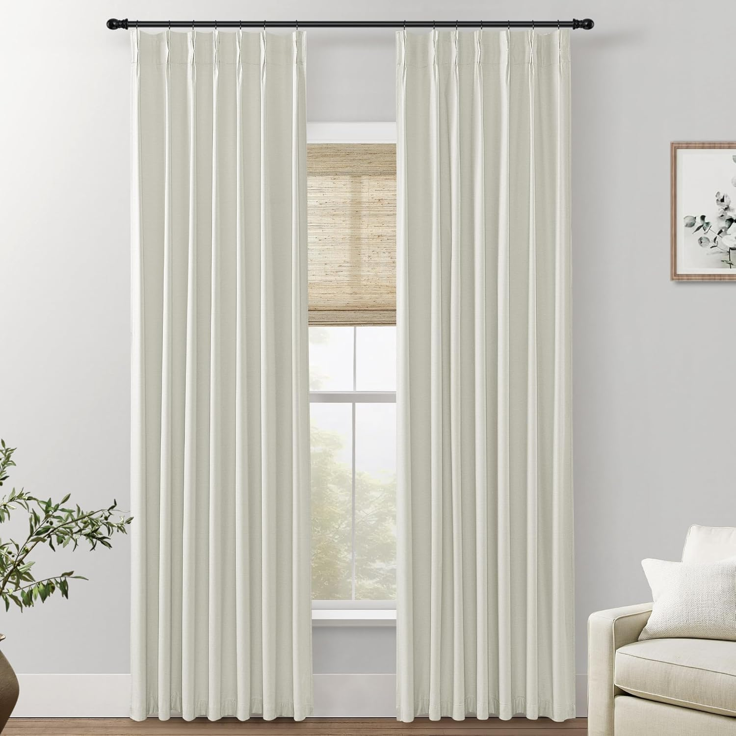 GREYISH WHITE 100% BLACKOUT CURTAINS 2 PANELS 102 INCH EXTRA LONG LINEN DRAPES FOR LIVING ROOM BEDROOM INSULATED TRACK CURTAINS PINCH PLEATED OFF WHITE