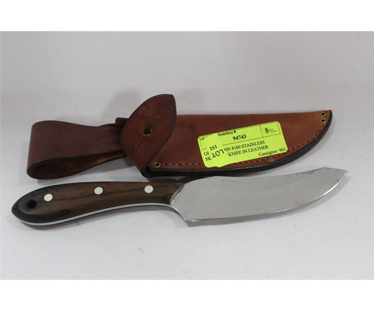 GROHMANN #100 STAINLESS SKINNING KNIFE IN LEATHER