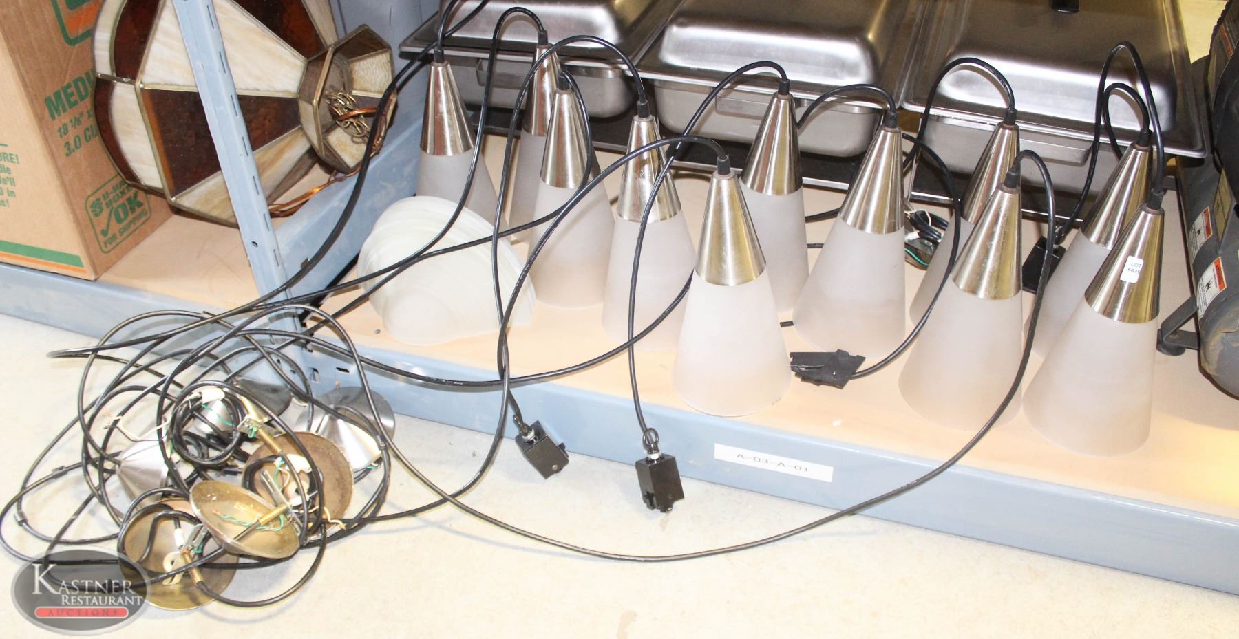 FOUR WALL SCONCE SHADES(GLASS ONLY) SOME PENDANTS ARE MISSING COVER PLATE FLUSHMOUNT.
