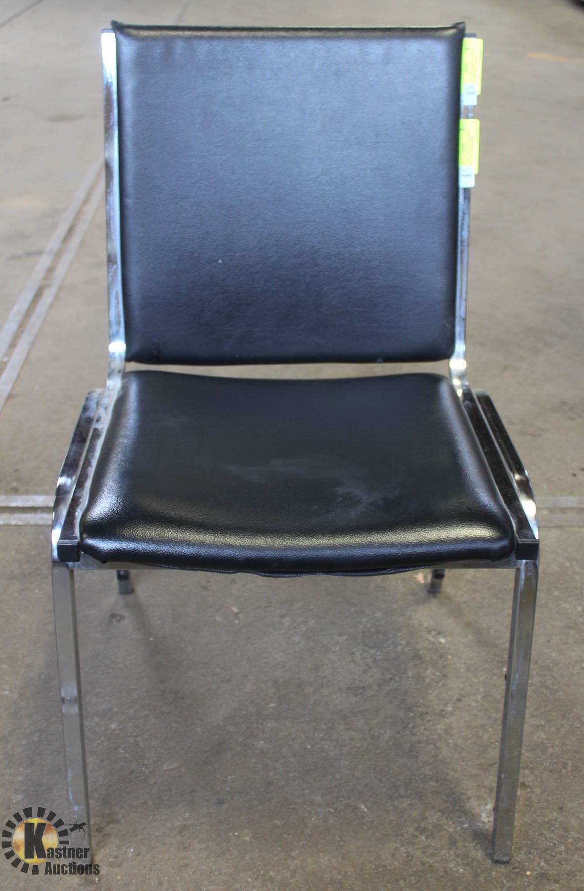 GROUP OF 16 BLACK-LEATHER PADDED CHROME CHAIRS