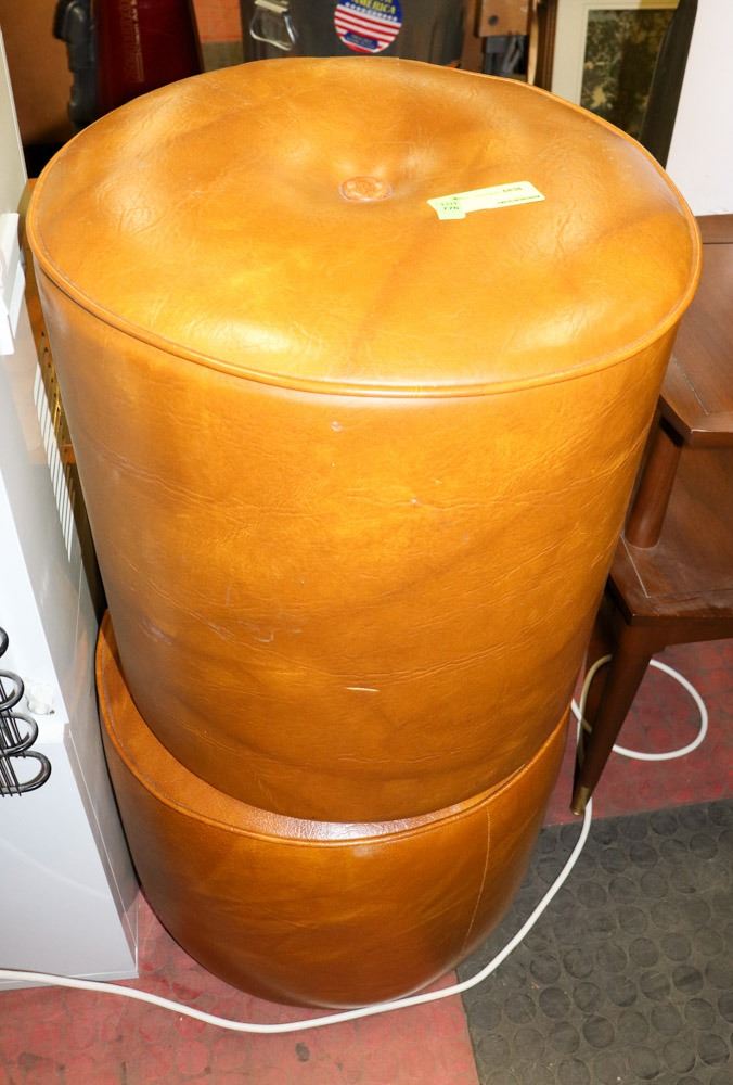 GROUP OF 2 LIGHT BROWN LEATHERETTE STOOLS