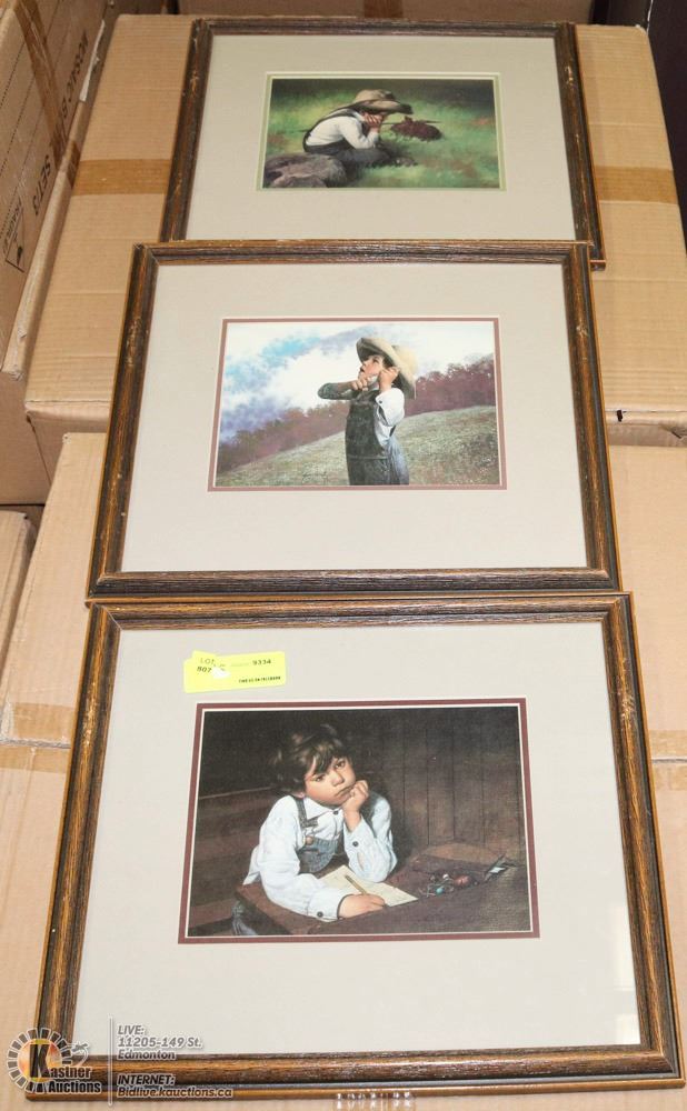 GROUP OF 3 WOOD FRAMED ESTATE PICTURES