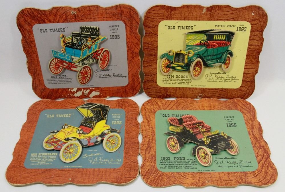 GROUP OF 4 ANTIQUE AUTOS WALL HANGINGS