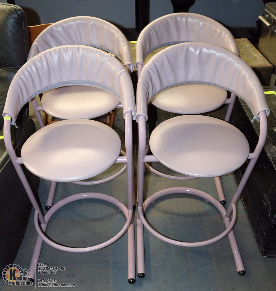 GROUP OF 4 DUSTY ROSE LEATHERETTE STOOLS