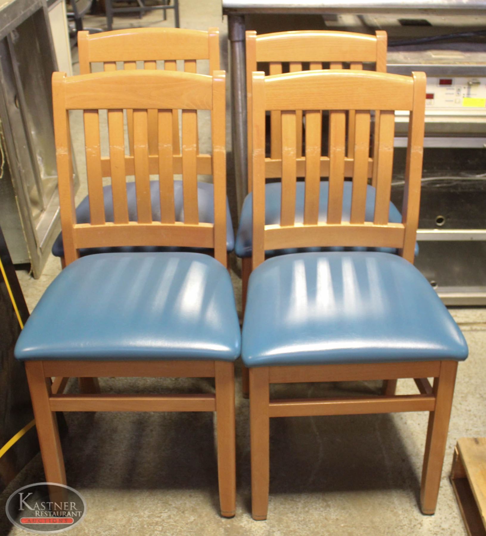 MADE IN ITALY, SOLID WOOD. LIGHT BROWN , STANDARD SIZE, BLUE SKY COLOUR PADDED SEATS. COMMERCIAL DINING. DINER. SEATING.