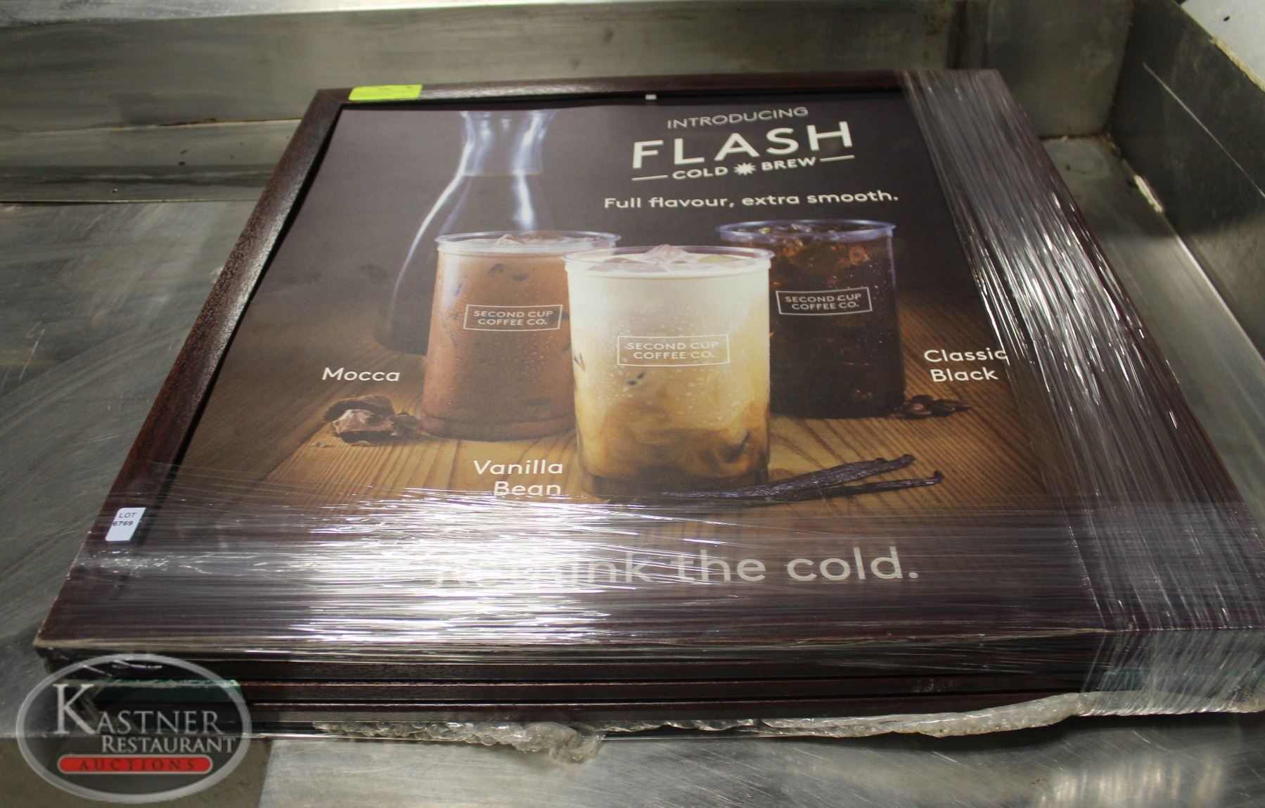 ADVERTISEMENT BOARDS W/ VINYL BACKING/INSERT. 25-1/2" X 25-1/2" X 5/8" VINYL: 23-7/8" X 23-7/8"