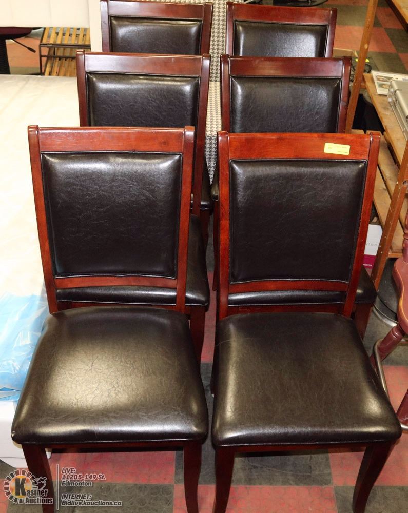 GROUP OF 6 LEATHERETTE AND CHERRY WOOD SIDECHAIRS