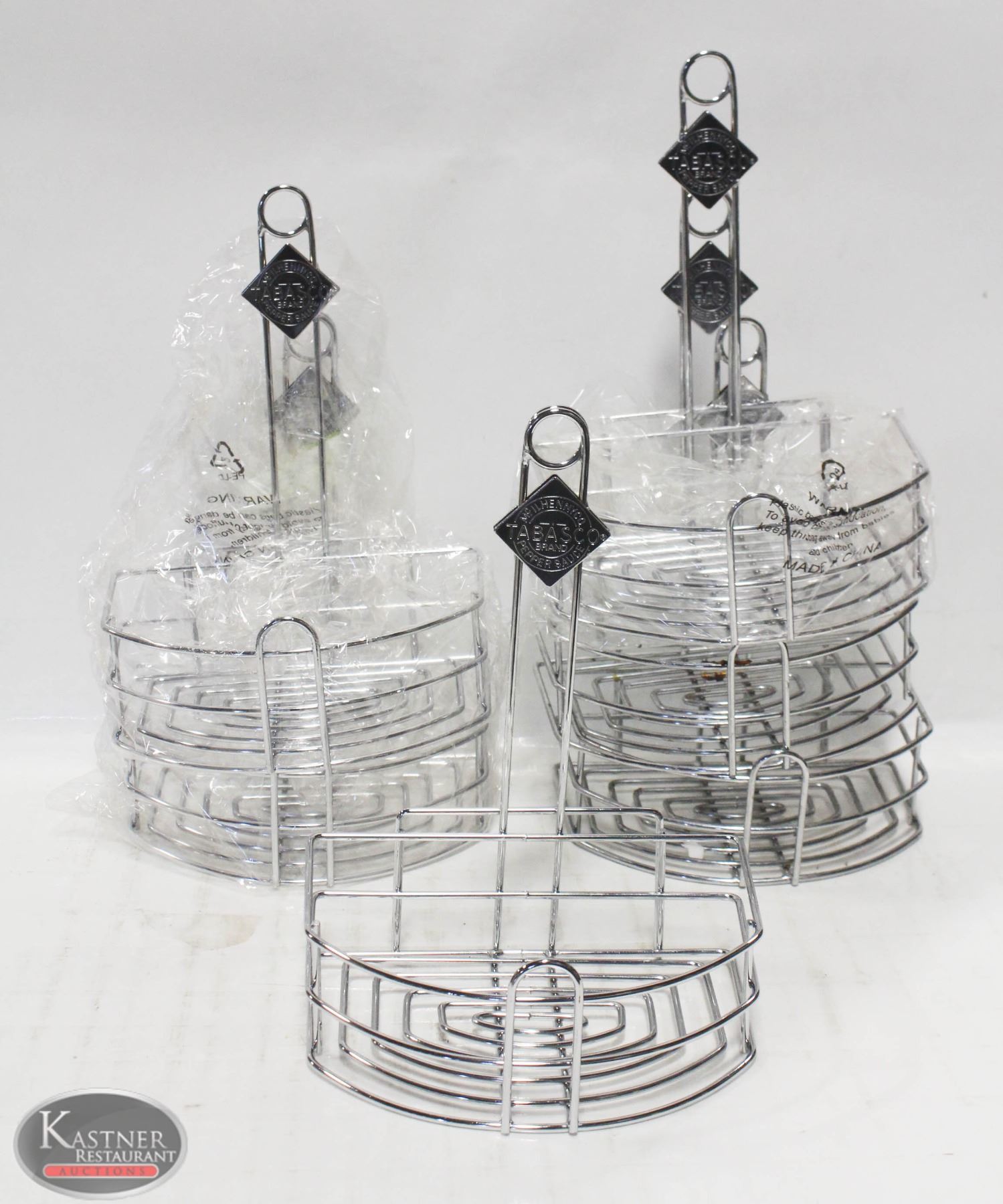 GROUP OF 6 NEW TABLETOP CHROME WIRE CONDIMENT