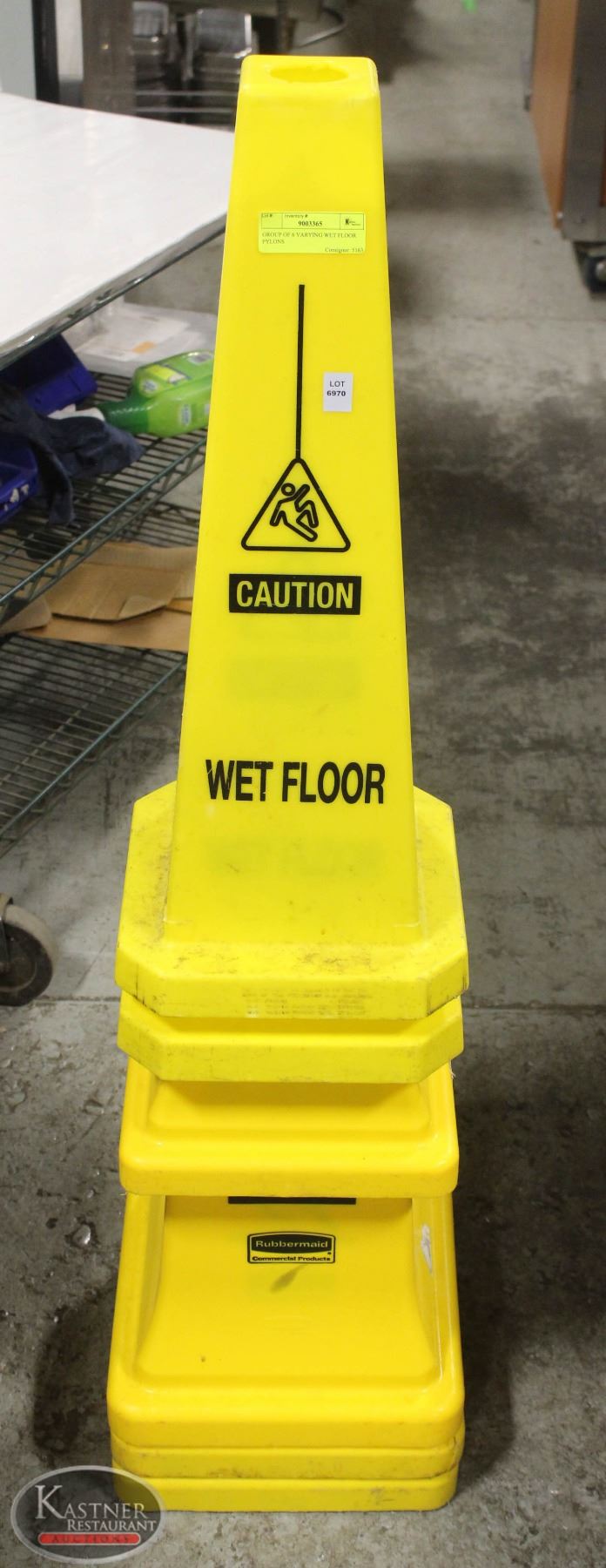 GROUP OF 6 VARYING WET FLOOR PYLONS