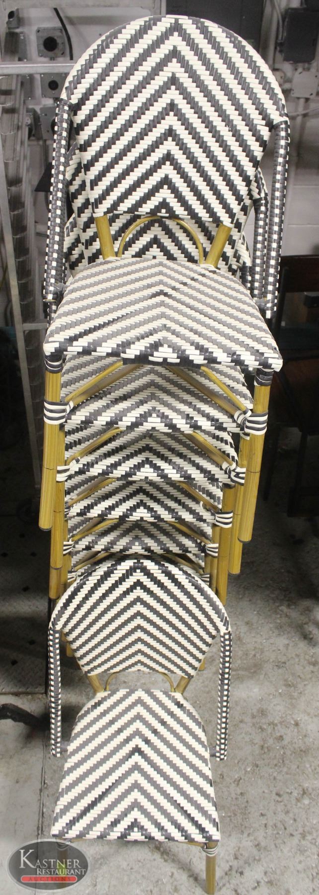 BAMBOO PATTERNED / PAINTED METAL FRAME. RESTAURANT / PATIO. IN GOOD CONDITION.