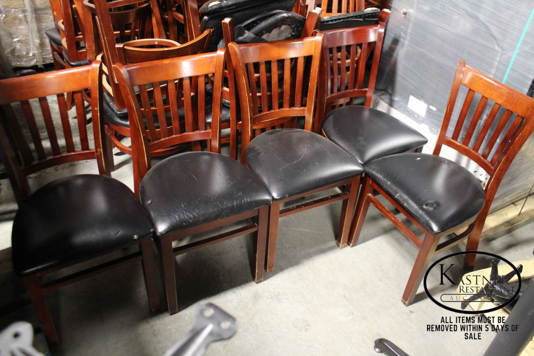 GROUP OF FIVE PADDED LEATHERETTE DINING CHAIRS