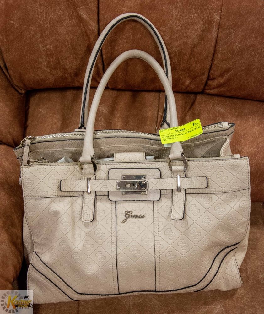GUESS PURSE, HAS 2 LARGE CENTRE SECTIONS & 2