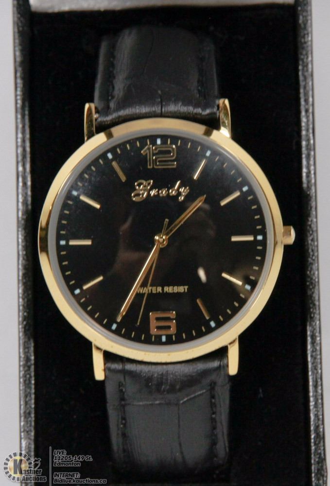 GXADY STAINLESS STEEL MEN'S WATCH W/ BLACK STRAP