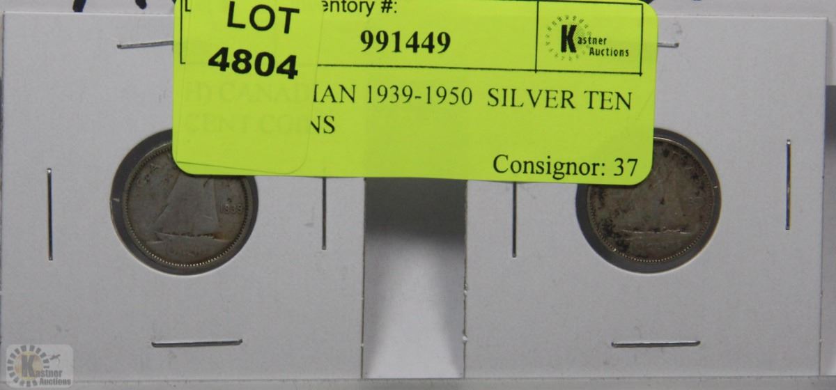 H) CANADIAN 1939-1950 SILVER TEN CENT COINS