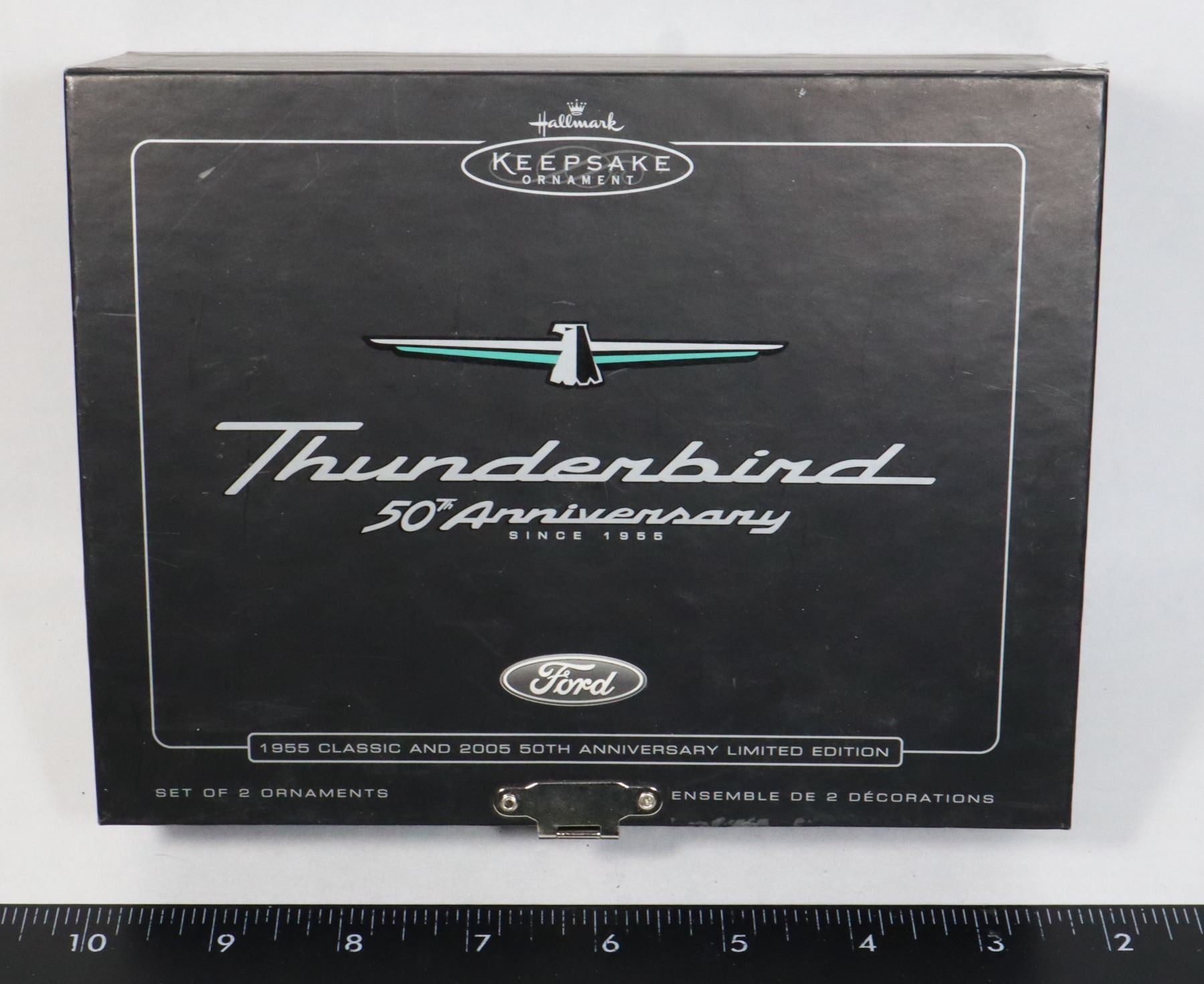 ANNIVERSARY 2 CAR ORNAMENT SET. DIE CAST METAL AND HANDCRAFTED. IN ORIGINAL DISPLAY BOX