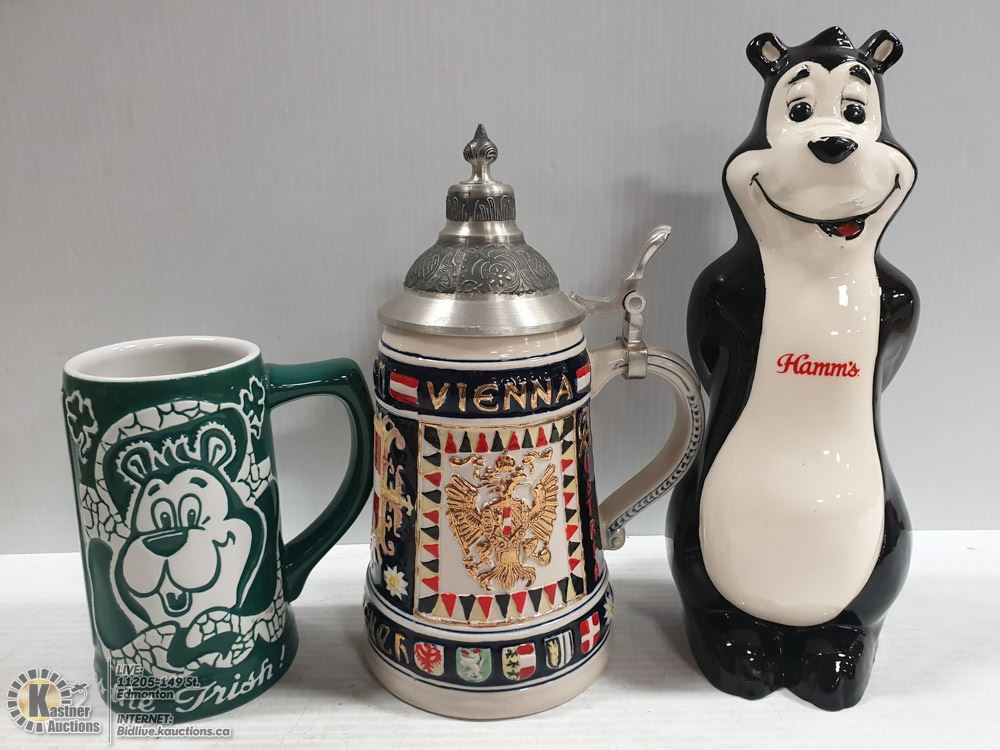 HAMMS BEER STEIN AND VINTAGE 1970s COIN BANK,