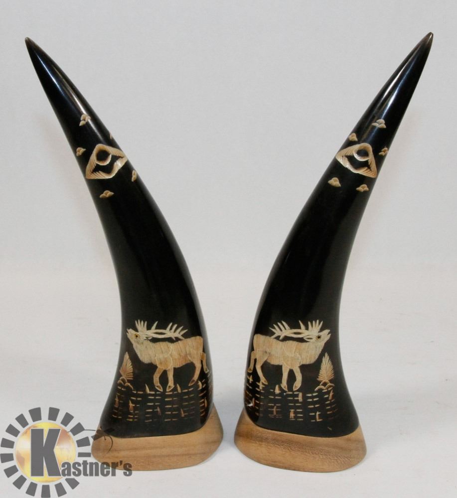 HAND CARVED BUFFALO HORNS-ENGRAVED