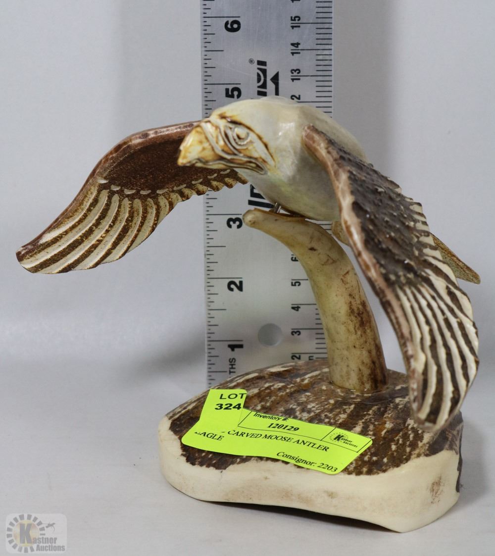 HAND CARVED EAGLE MADE OUT OF MOOSE ANTLER