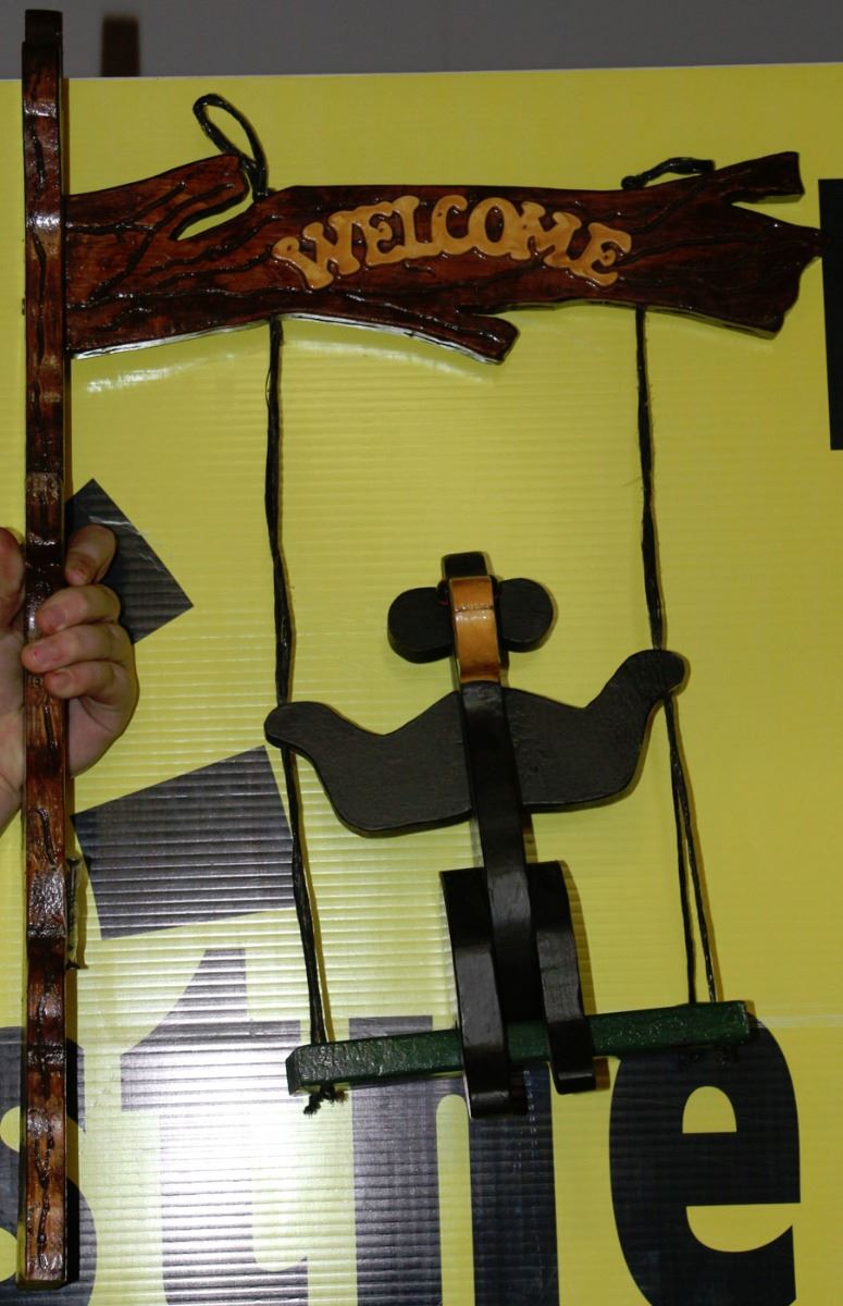 HAND CARVED HANGING BEAR WELCOME SIGN