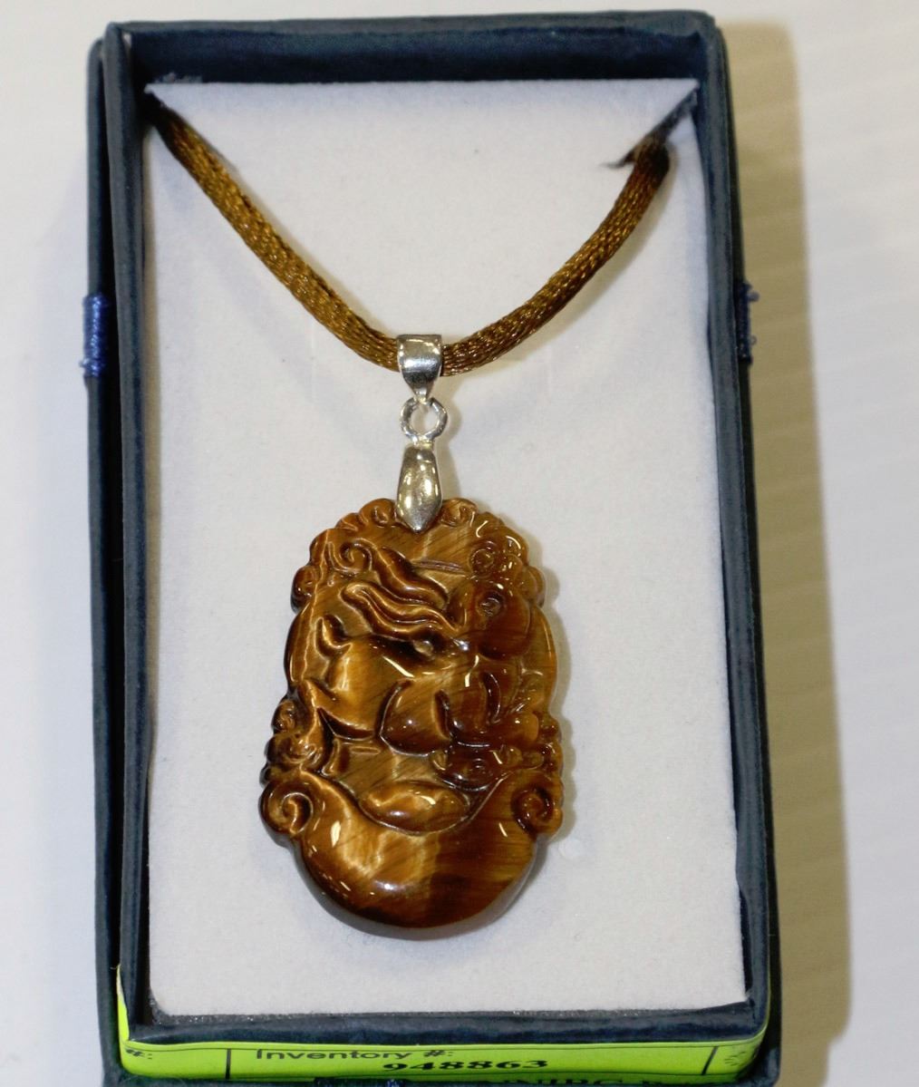 HAND SET ON A COORDINATING SILK CORD STONE IS 1 3/4 " LONG