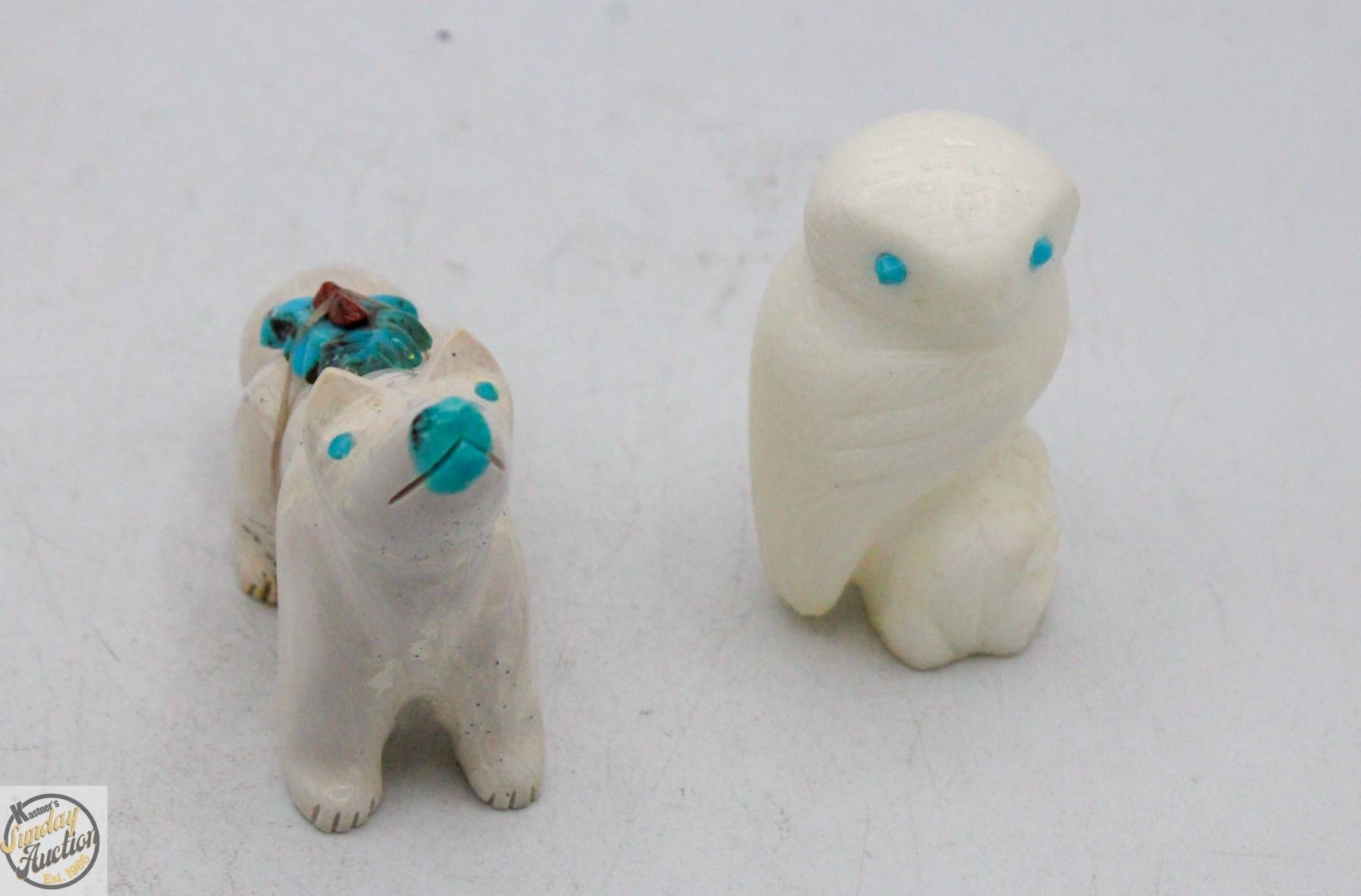 HAND CARVED ZUNI OWL & WOLF ZUNI FETISH