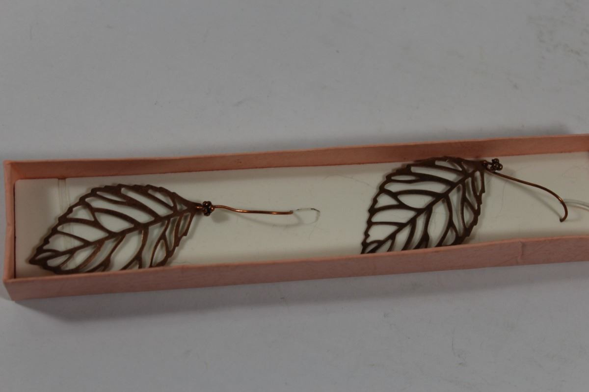 HAND CRAFTED SOLID COPPER OPEN WORK LEAF EARRINGS
