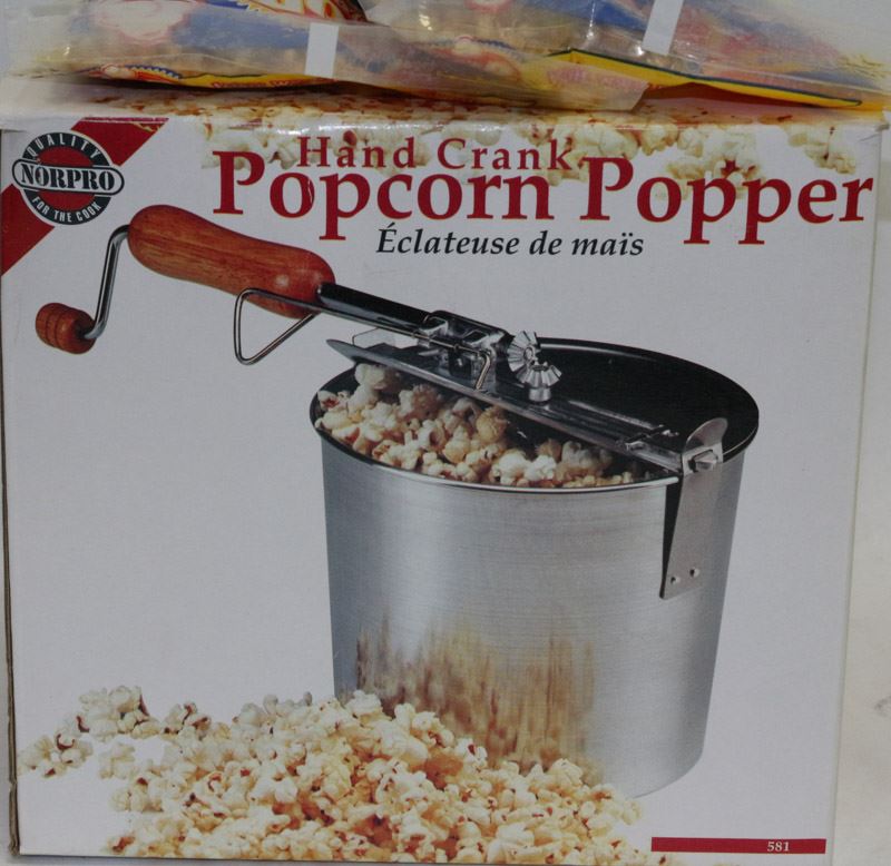 HAND CRANK POPCORN POPPER WITH POPCORN