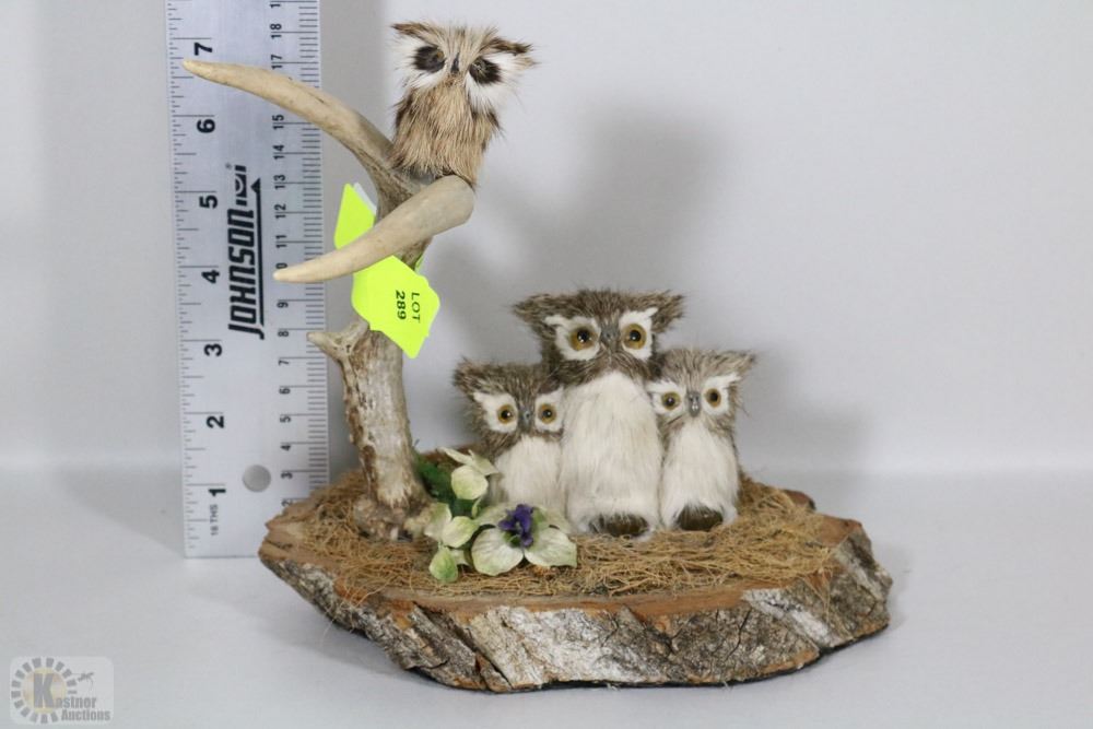 HAND MADE DISPLAY W/ OWLS AND ELK HORN