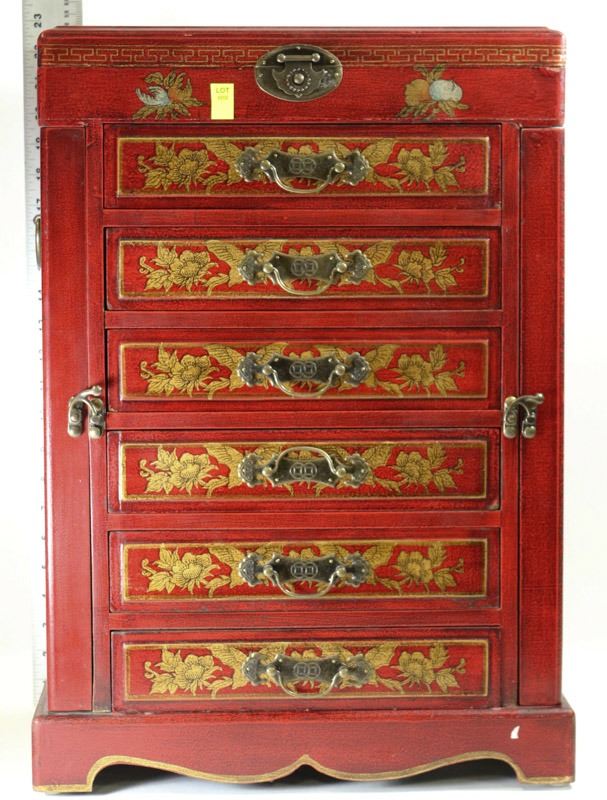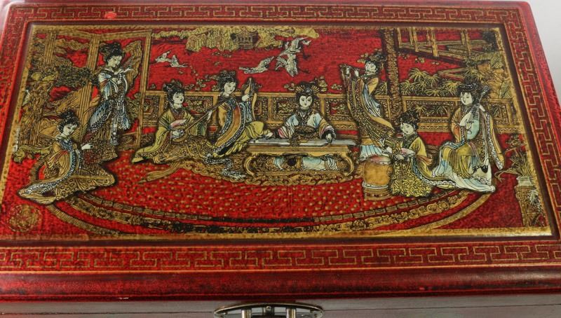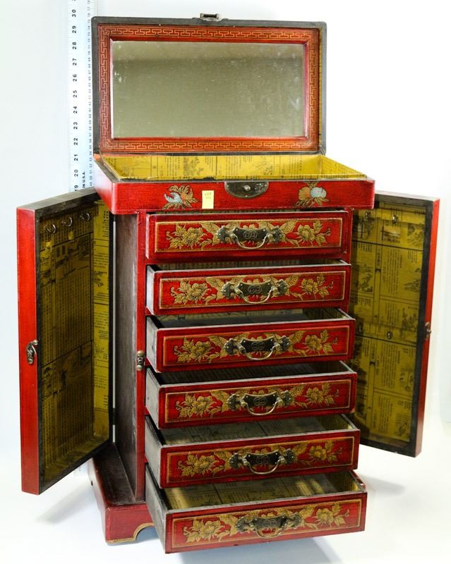 WITH MIRROR, MADE OF WOOD AND COVERED W/ THIN LAYER OF LEATHER - 22.5"T X 15"L X 9"W
