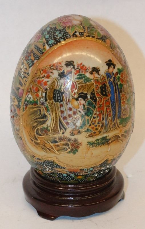 HAND PAINTED CHINESE SATSUMA 4" EGG, PORCELAIN