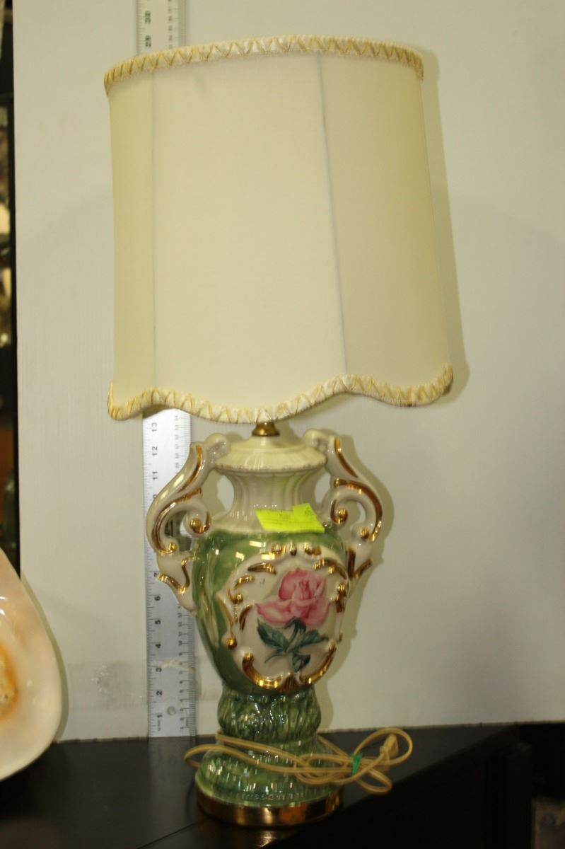 HAND PAINTED PORCELAIN LAMP WITH SHADE