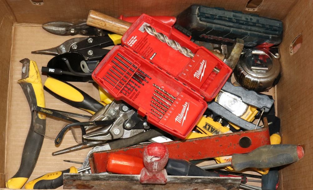HAND TOOL LOT: INCLUDES TAPE, SCREW DRIVERS &