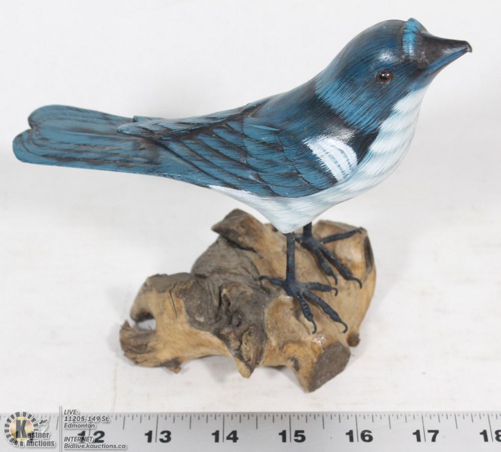 HANDCARVED AND PAINTED BLUE JAY BIRD ON STAND
