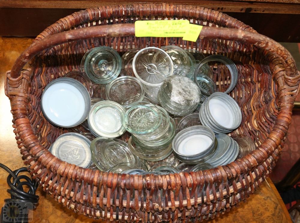 HANDMADE BASKET FULL OF GLASS CANNING JAR LIDS