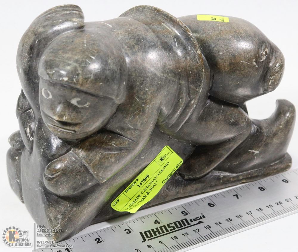 SOAPSTONE CARVING DATED 28/3/78 WITH COA . 10" WIDE X7" TALL. VERY HEAVY