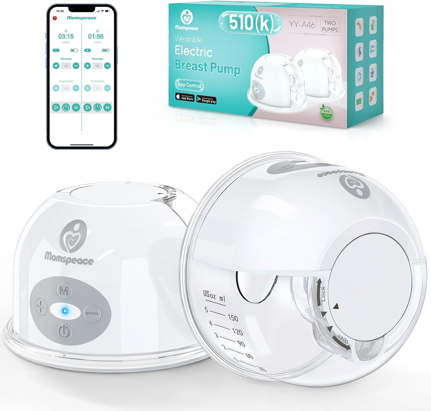 HANDS FREE BREAST PUMP, MOMSPEACE BREAST PUMPS WITH APP & TIMER