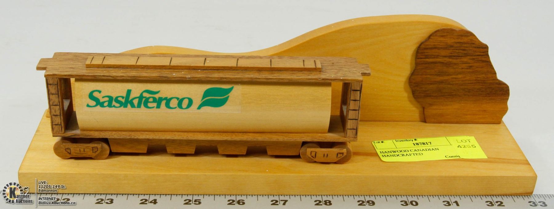 AND HANDMADE WOODEN TRAIN WALL DISPLAY "SASKFERCO" MADE IN SASKATCHEWAN (LABELLED)