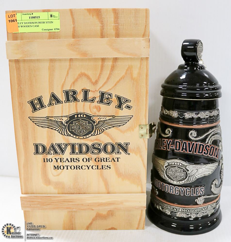HARLEY DAVIDSON BEER STEIN WITH WOODEN CASE