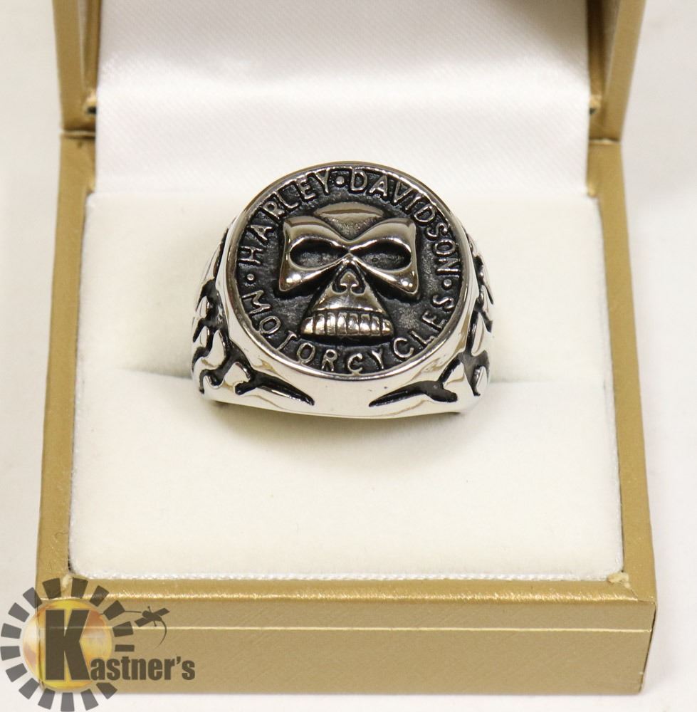 HARLEY DAVIDSON RING SILVER TONE SKULL RING SZ  10