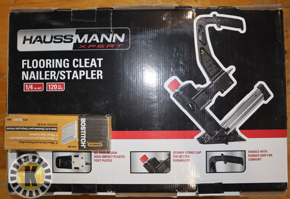 STAPLER 1/4", 120PSI. SOLD WITH BOX OF 2" HARDWOOD FLOORING NAILS***ITEM(S) LOCATED IN LETHBRIDGE ALBERTA
