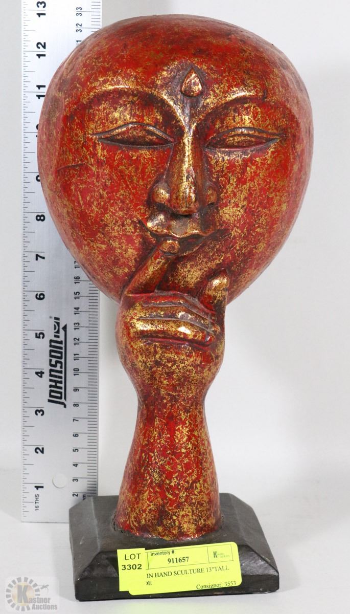 HEAD IN HAND SCULPTURE 13"TALL 6" WIDE