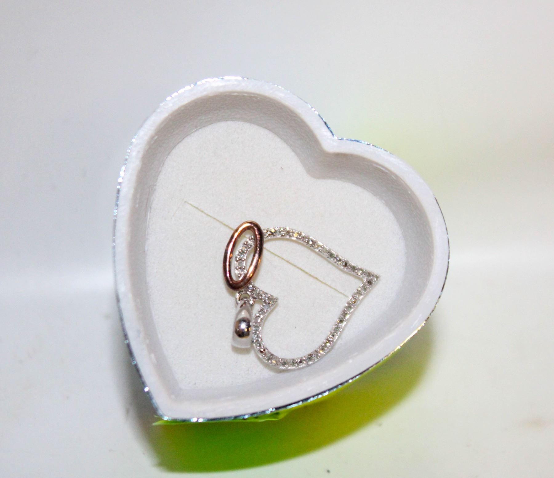HEART DIAMOND PENDANT, STAMPED 925 10K.
