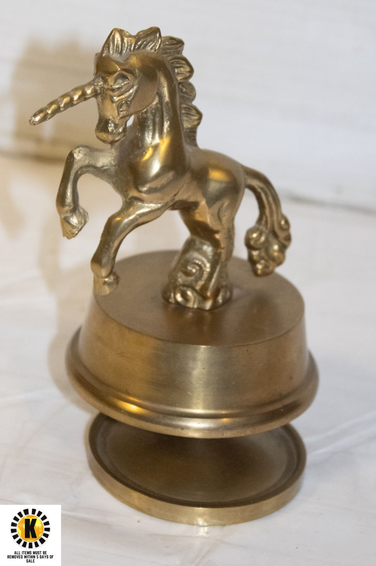 HEAVY BRASS MUSICAL UNICORN 6 IN TALL,TESTED