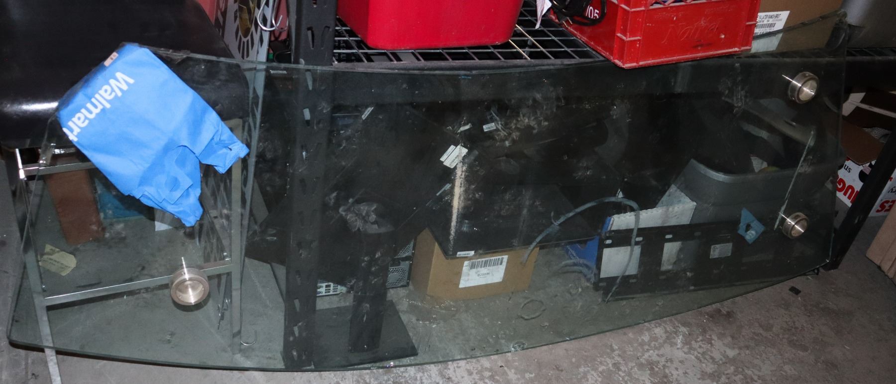 HEAVY GLASS DESK TOP, CURVED (APPROX 87" LONG)