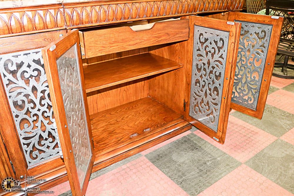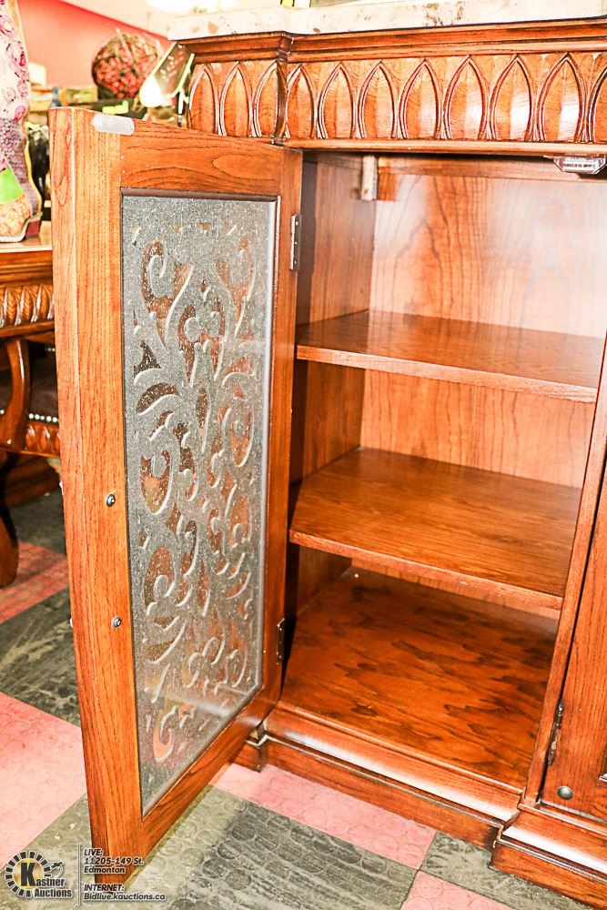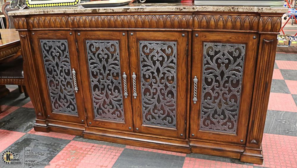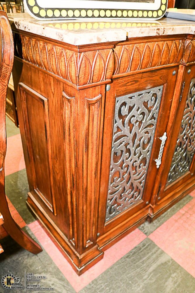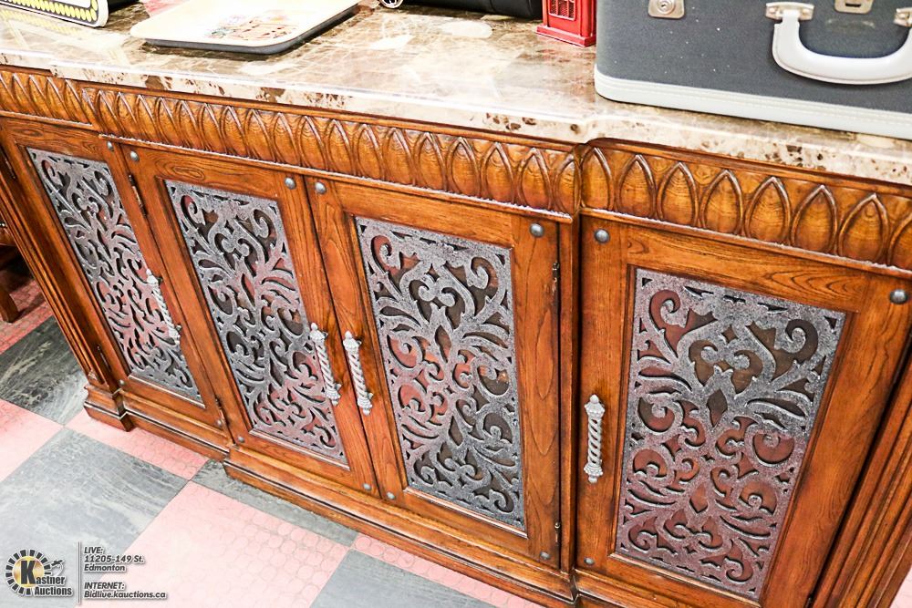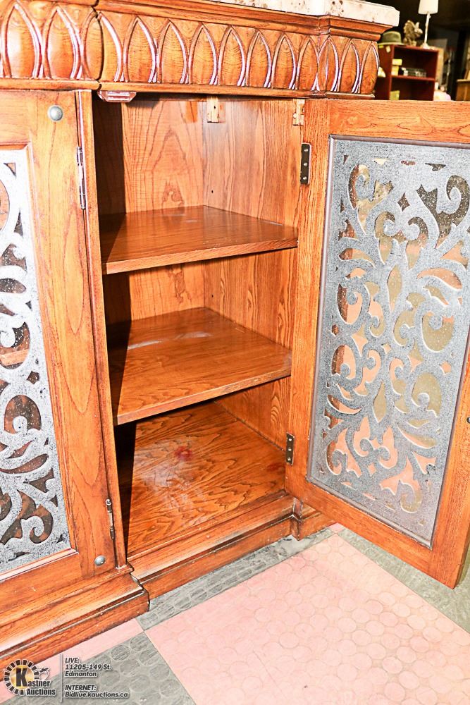 HEAVY MARBLE WOOD CARVED SIDEBOARD 77" X 22" X 42"