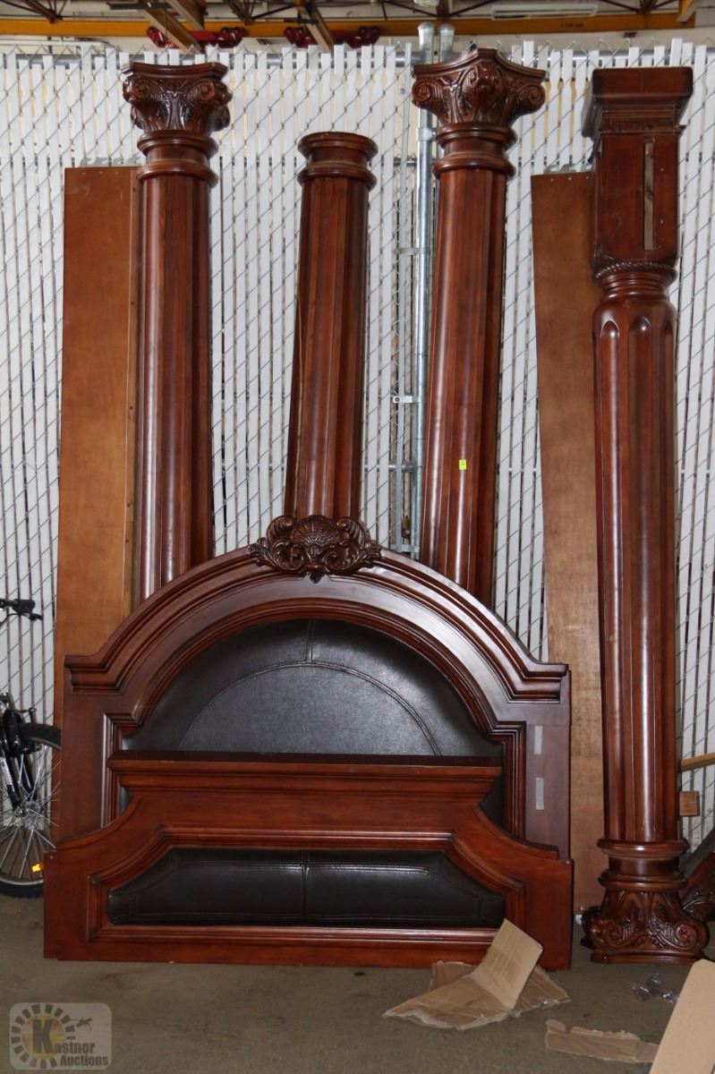 HEAVY SINGLE CARVED 4 POST BEDFRAME , DAMAGED / AS