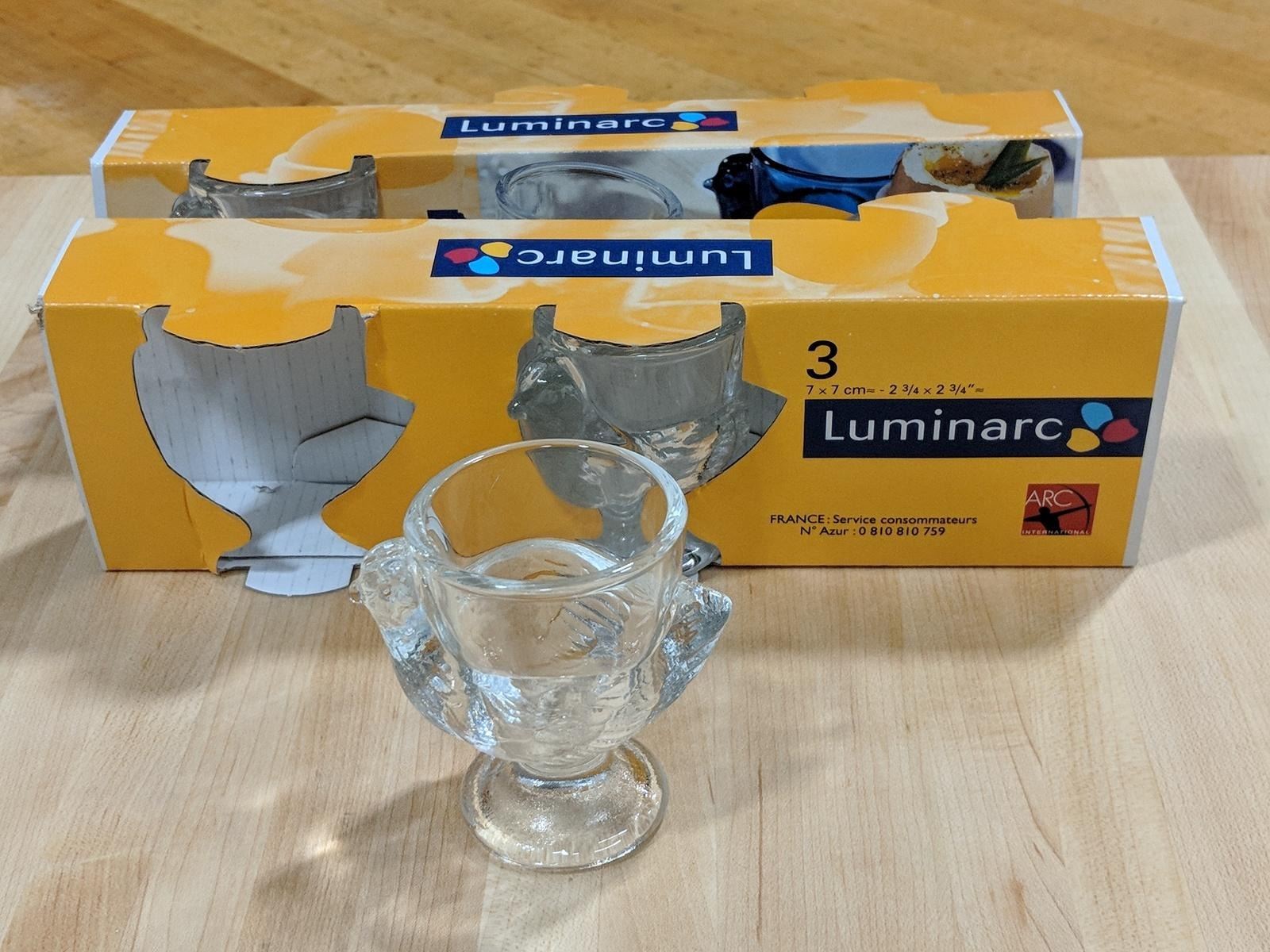 K646-J633 NEW HEN GLASS EGG CUPS - LOT OF 6 (2 BOXES), LUMINARC 49228