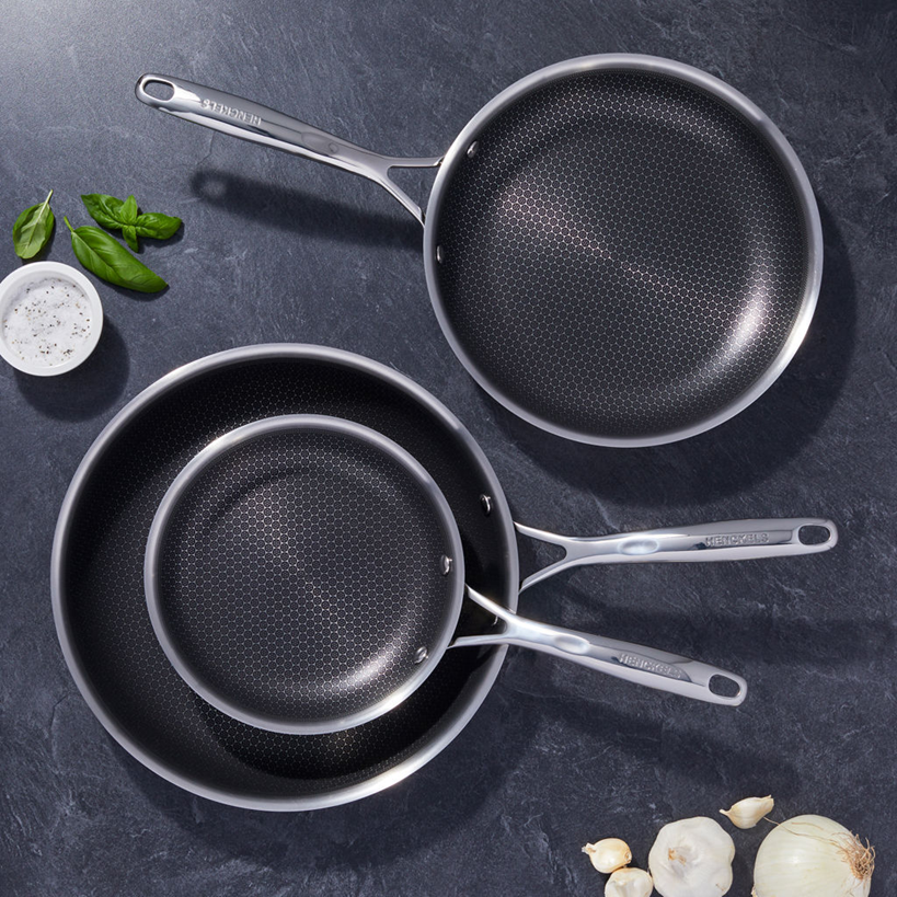HENCKELS PARADIGM STAINLESS STEEL SKILLET SET (GOOD COMPLETE SET)
