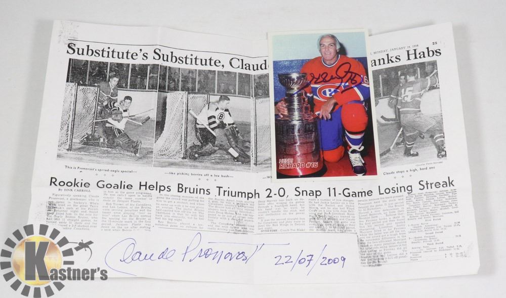 AND CLAUDE PRONOVOST BOSTON BRUINS SIGNED NEWSPAPER ARTICLE